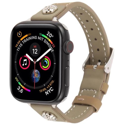 Correa de cuero de microfibra con remaches en color camelia para Apple Watch de 46 mm, 49 mm, 45 mm y 44 mm (gris topo)