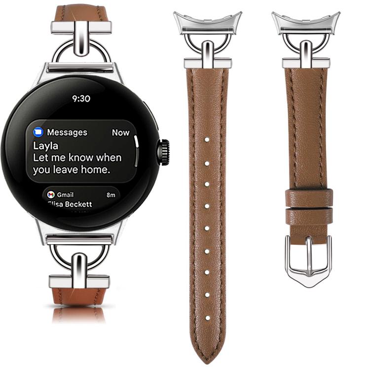 Correa de cuero metálica pequeña en forma de D de 45 mm para Google Pixel Watch 4/3 (marrón)