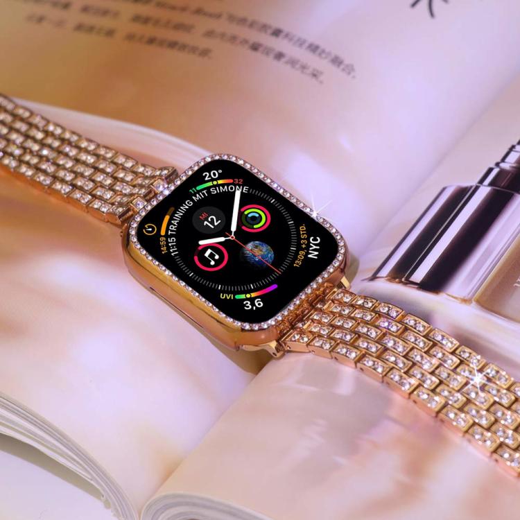 Correa de metal con diamantes brillantes y estuche para Apple Watch Series 41 mm xDfind (oro rosa)
