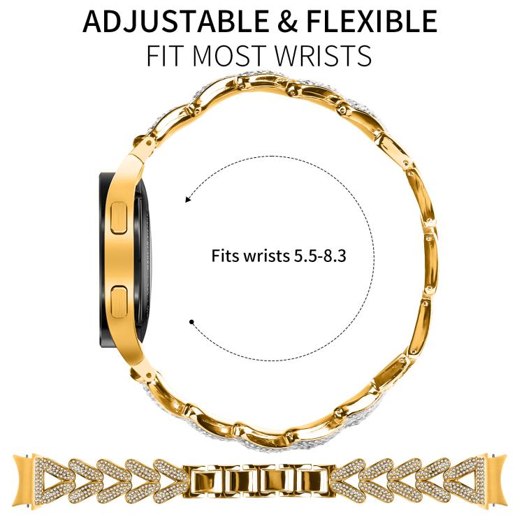 Correa de metal con diamantes pequeños de 20 mm xDfind para Samsung Galaxy Watch FE/7/6/5/4 Classic (dorada)