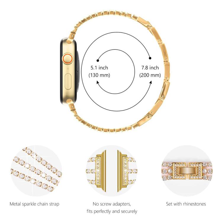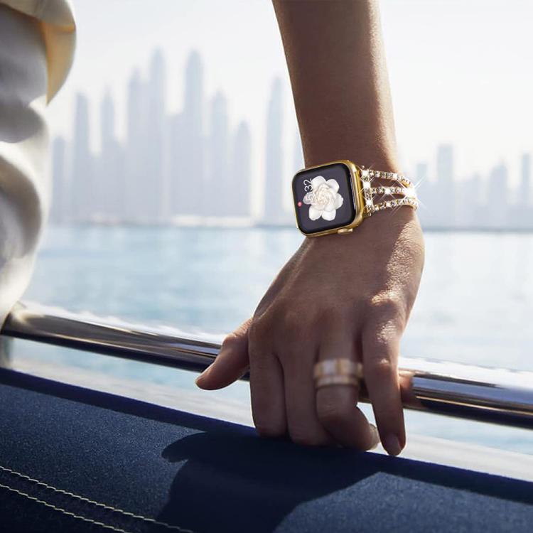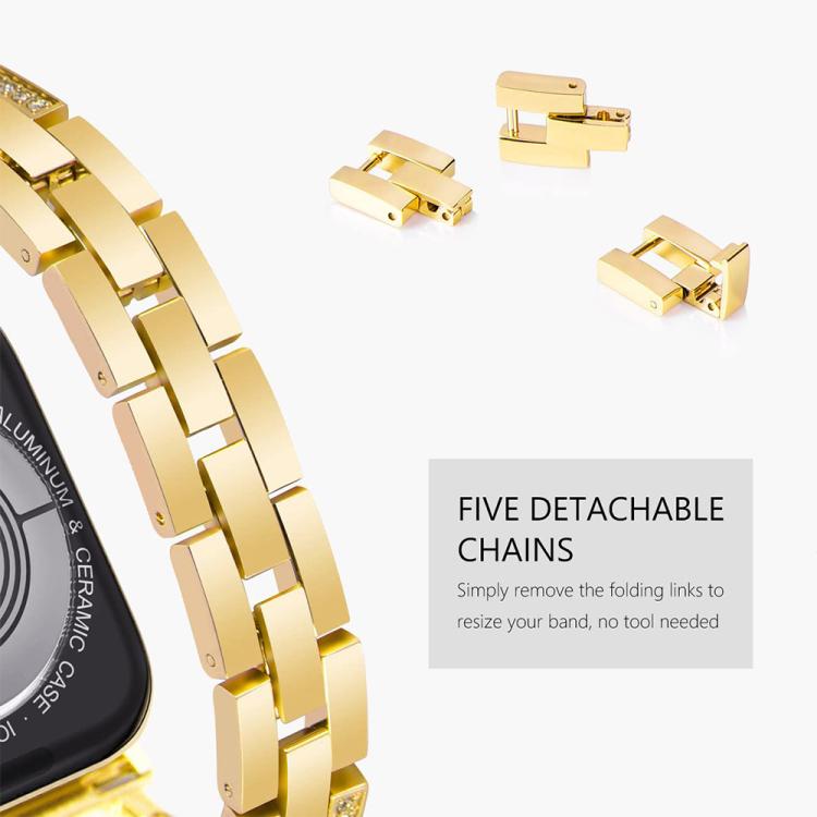 Correa de metal con tres diamantes xDfind para Apple Watch 38/40/41/S10 de 42 mm (dorada)