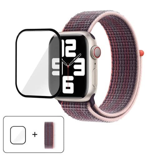 Correa de nailon básica con película curva 3D para Apple Watch Series 42 mm (morado baya)