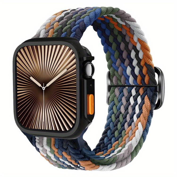 Correa de nailon con hebilla de escalera para Apple Watch de 40 mm/41 mm y funda de TPU (color denim)