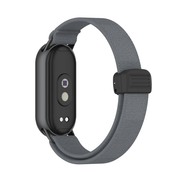 Correa de nailon elástica con hebilla magnética de plástico y cabeza de metal para Xiaomi Smart Band 10/9/8 (color carbón)
