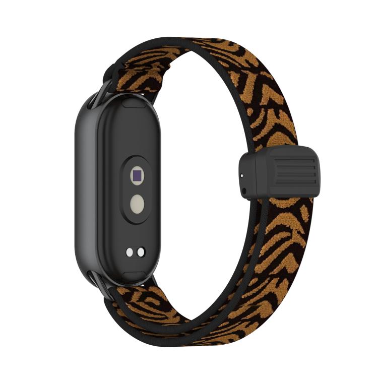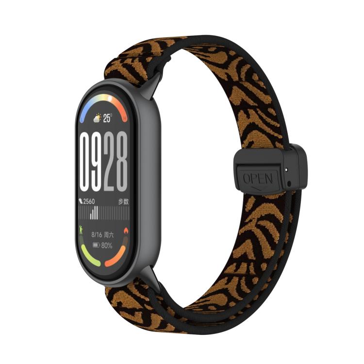 Correa de nailon elástica con hebilla magnética de plástico y cabeza de metal para Xiaomi Smart Band 10/9/8 (leopardo)
