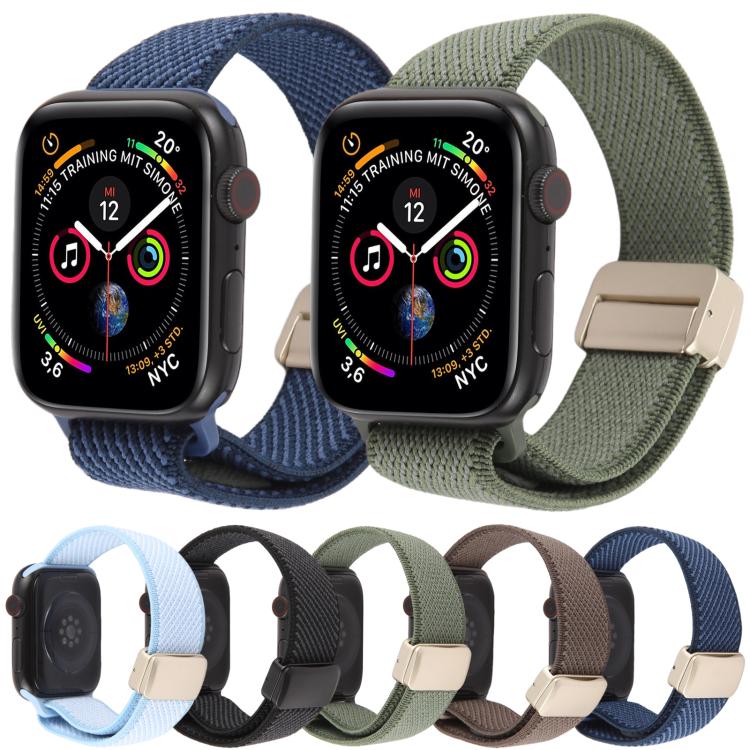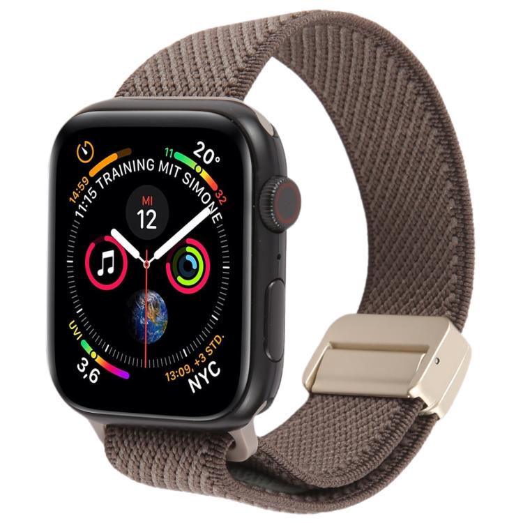 Correa de nailon elástico bicolor con hebilla magnética para Apple Watch de 46 mm, 49 mm, 45 mm y 44 mm (marrón oscuro y marrón claro).
