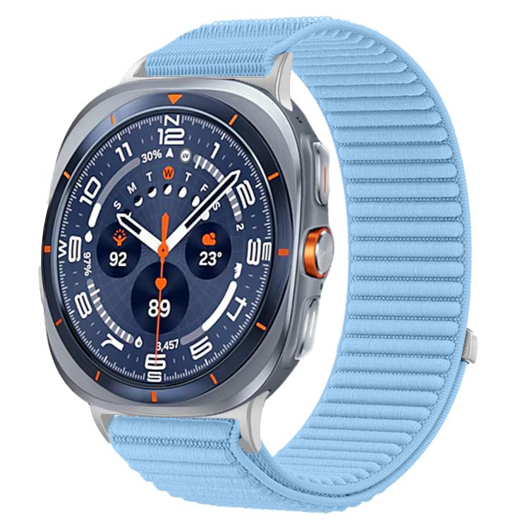 Correa de nailon tejido con cierre de velcro y interfaz metálica para Samsung Galaxy Watch Ultra de 47 mm/Ultra 2025 (azul isla)