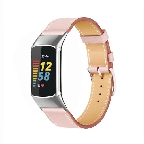 Correa de piel de vacuno para Fitbit Charge 6/5 (rosa claro)