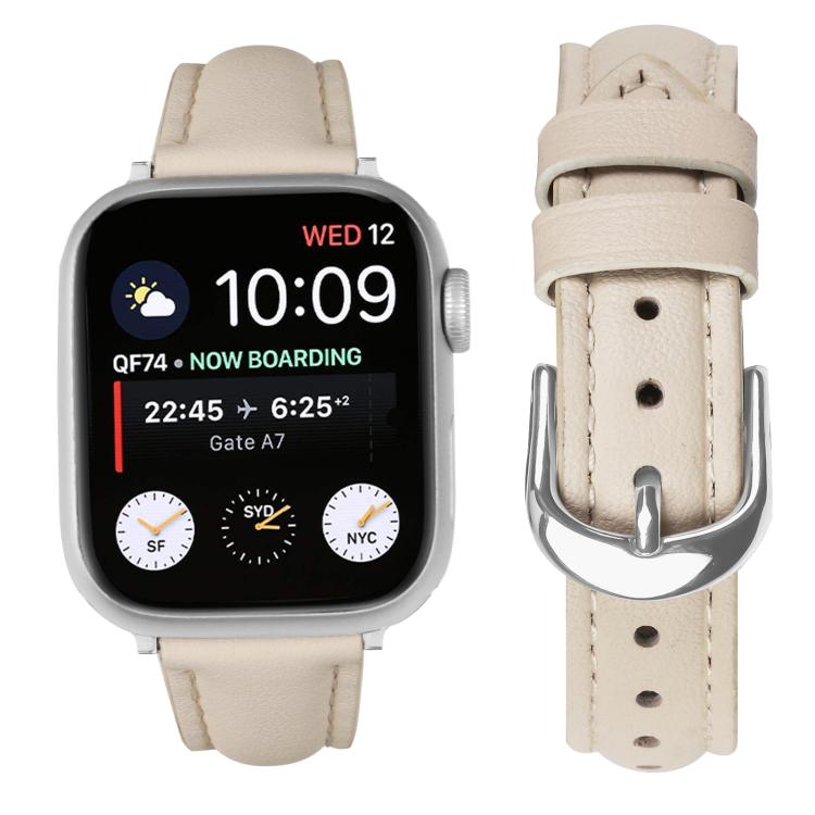 Correa de piel sintética para Apple Watch de 42 mm / 41 mm / 40 mm / 38 mm (color almendra).
