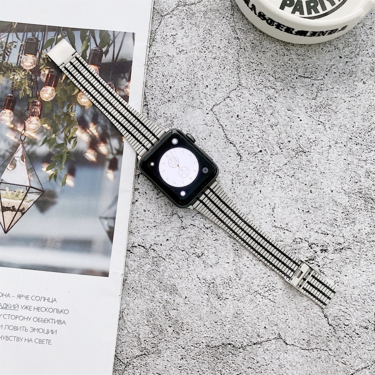 Correa de Reloj de Acero para Apple Watch Series 8 y 7 41mm y otros Modelos (Negro Plateado)