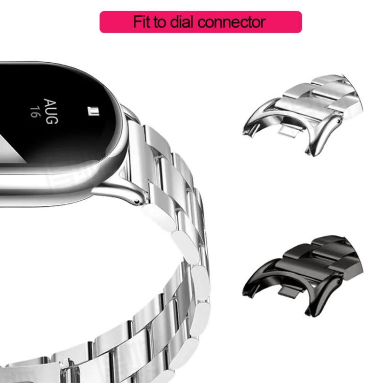 Correa de reloj de aleación de titanio con hebilla plana de tres cuentas para Xiaomi Band 9/8 (plateada)
