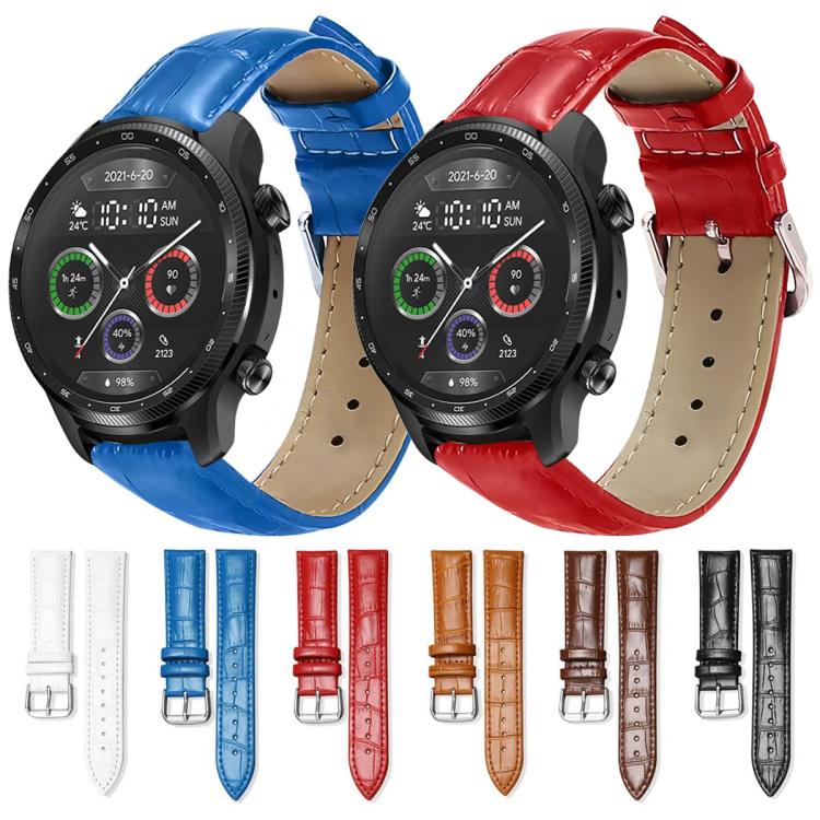 Correa de reloj de cuero con hebilla de pasador y textura de bambú de 20 mm para Ticwatch GTH/E3/E/2 xDfind (marrón oscuro)