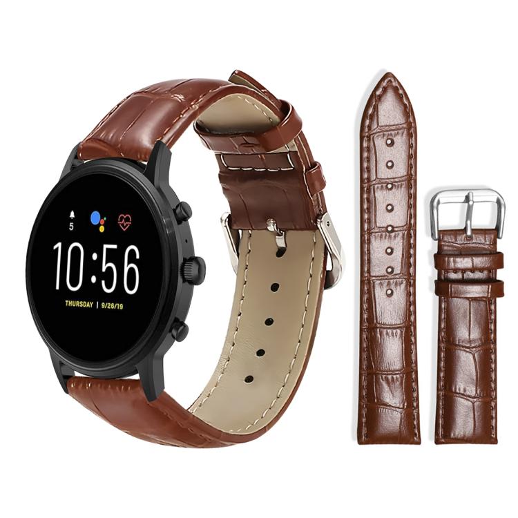 Correa de reloj de cuero con hebilla de pasador y textura de bambú de 22 mm para Fossil Gen 5 Carlyle/Julianna/Garrett xDfind (marrón oscuro)