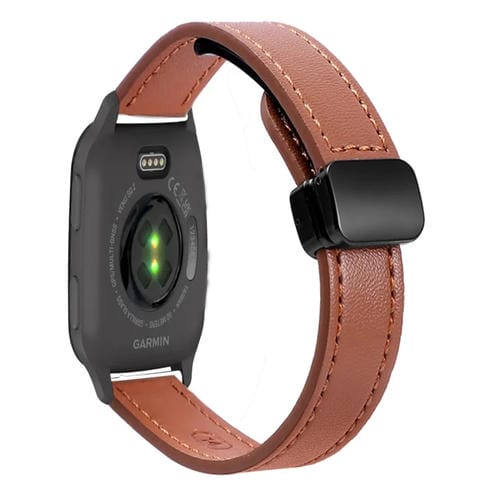 Correa de Reloj de Cuero Microfibra con Hebilla Magnética 20mm para Garmin Venu Sq (Marrón Moca)