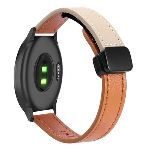 Correa de Reloj de Cuero de Microfibra con Hebilla Magnética Delgada de 20mm para Garmin Vivomove Style (Naranja Aima + Albaricoque Crema)