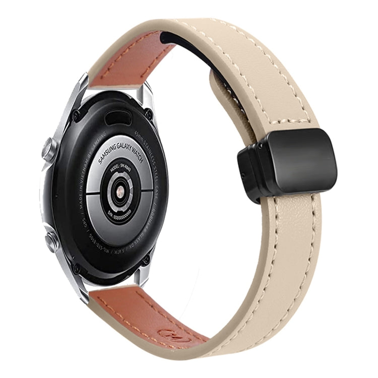 Microfiber Leather Watch Band with Slim Magnetic Buckle for Samsung Galaxy Watch 3 45mm 22mm (Cream Apricot)
