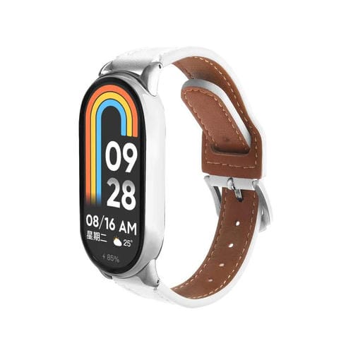 Correa de reloj de cuero de microfibra con hebilla plateada para Xiaomi Smart Band 9/9 NFC/8/8 NFC (blanca)