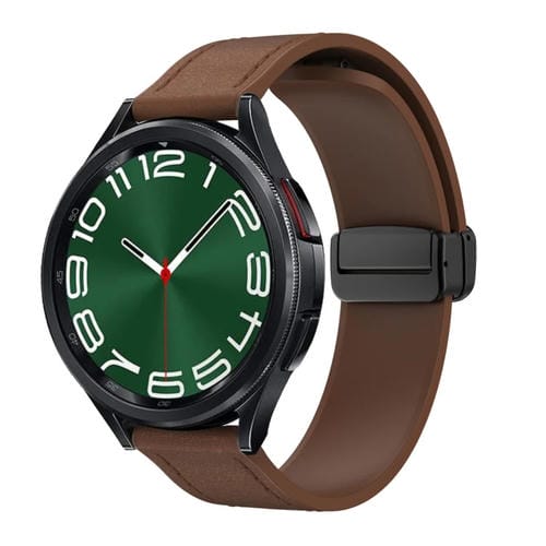 Correa de Reloj de Cuero y Silicona con Hebilla Magnética Negra 20mm (Marrón Oscuro)