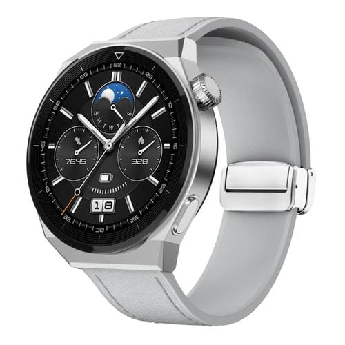 Correa de Reloj de Cuero de Silicona 22mm con Hebilla Plateada Magnética (Gris)