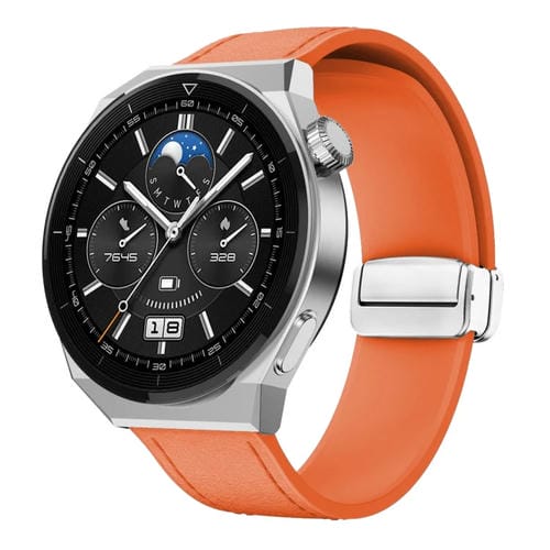 Correa de Reloj de cuero silicona 22mm naranja con hebilla plateada magnética