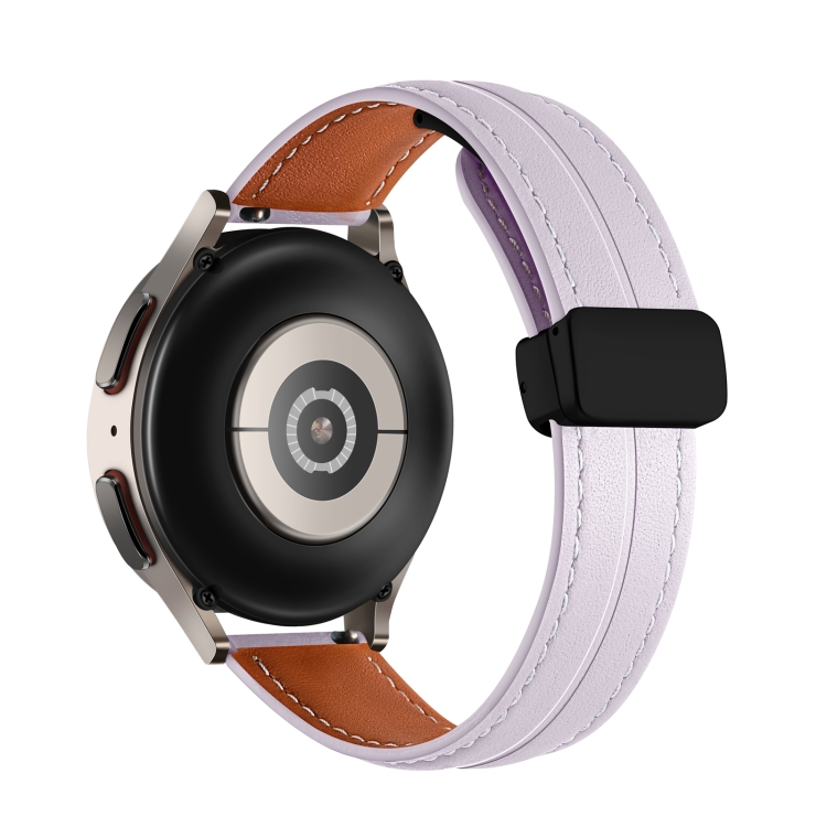 Correa de Reloj Cuero Genuino Ranurado 20mm con Hebilla Plegable (Púrpura)