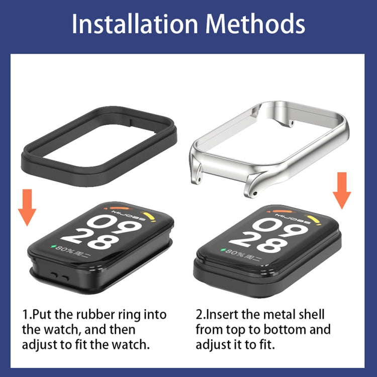 Correa de reloj de cuero sintético de microfibra con carcasa de metal Mijobs para Xiaomi Smart Band 9 Active / Redmi Band 3 (azul y plateado)