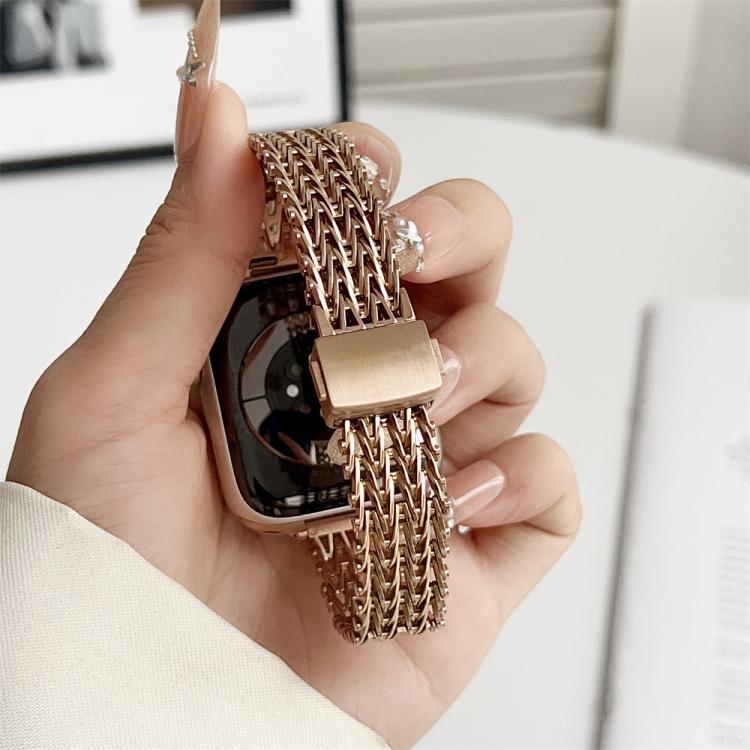 Correa de reloj de malla metálica de acero con cierre magnético delgado para Apple Watch de 42 mm / 41 mm / 40 mm / 38 mm (oro rosa)