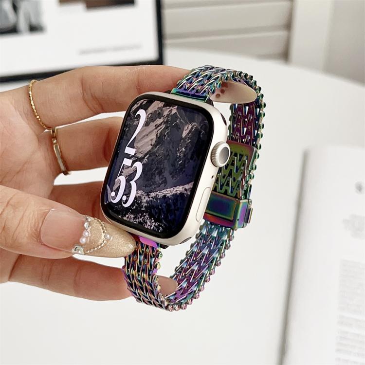 Correa de reloj de malla metálica de acero delgada con cierre magnético para Apple Watch de 46 mm / 49 mm / 45 mm / 44 mm (Colorida)
