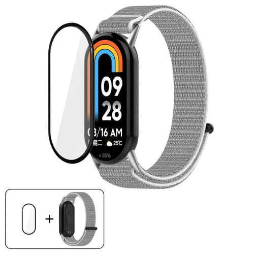 Correa de reloj de nailon con cierre de velcro y película curva 3D para Xiaomi Mi Band 8/8 NFC (color concha marina)