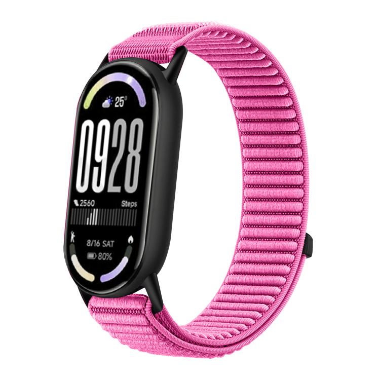 Correa de reloj de nailon tejido con cierre de velcro y interfaz metálica para Xiaomi Smart Band 10/9/8 (rosa peonía)