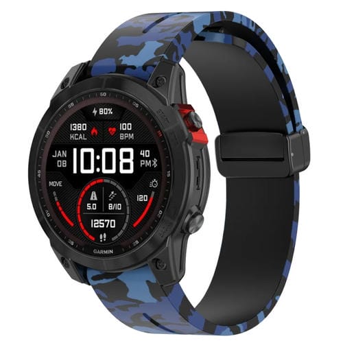 Correa de Reloj Silicona Garmin Fenix 7X Hebilla Plegable Magnética (Azul Camuflaje)