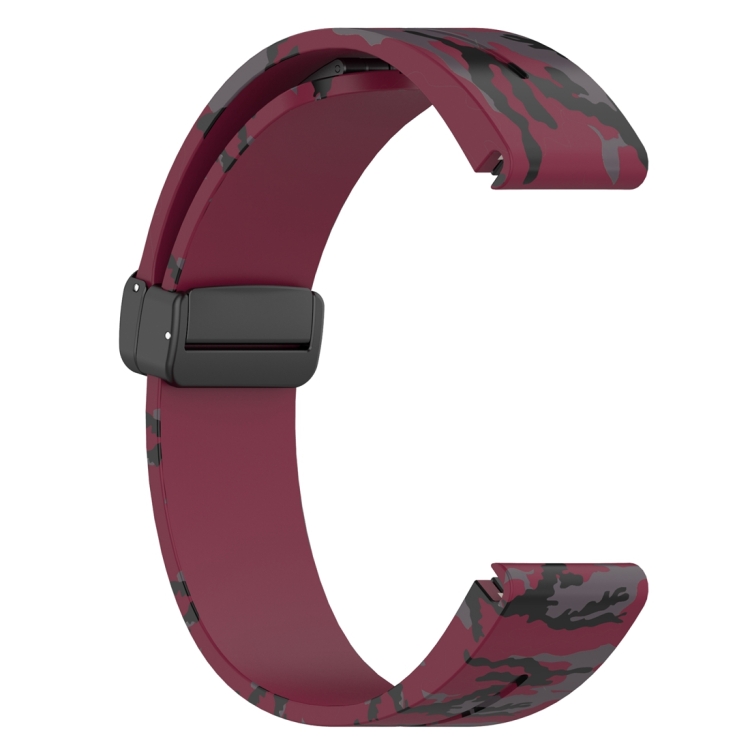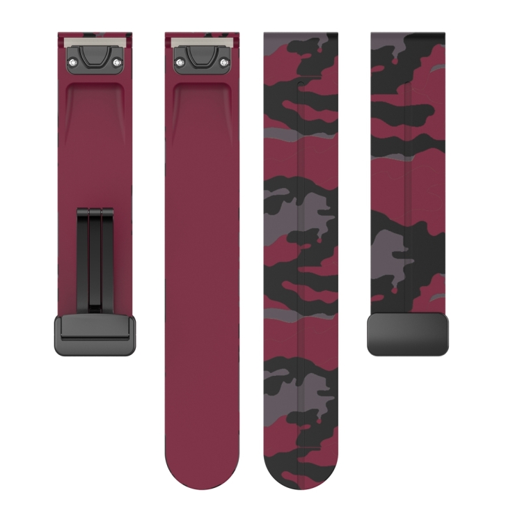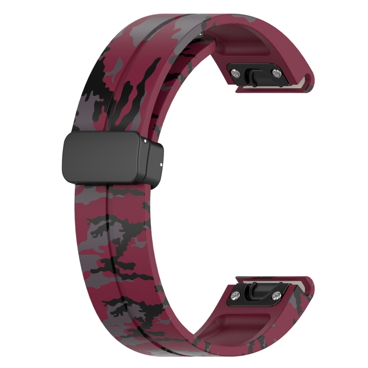 Correa de Reloj de Silicona Garmin Fenix 7X Estampado Camuflaje Rojo Vino con Hebilla Negra Plegable Magnética