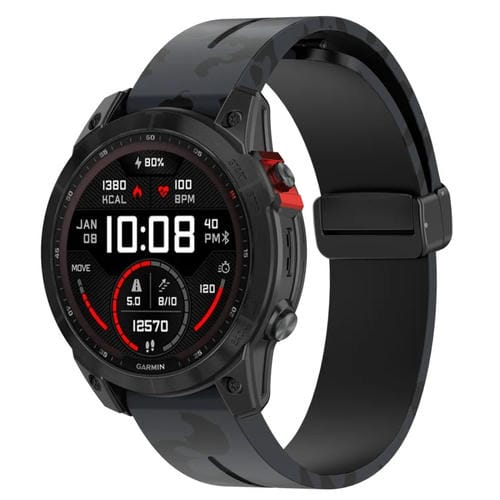 Correa de Reloj Silicona Garmin Fenix 7X Estampado Color Hebilla Negra Plegable (Gris Camuflaje)