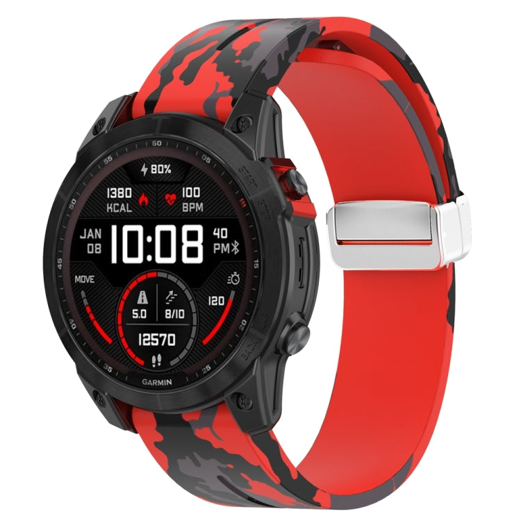 Correa de Reloj de Silicona Garmin Fenix 7X con Hebilla Plegable Magnética (Rojo Camuflaje)