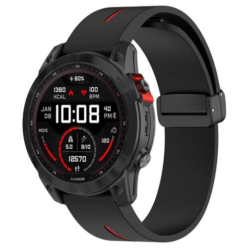 Correa de Reloj Silicona Garmin Fenix 7S Hebilla Negra Plegable Magnética (Negro y Rojo)