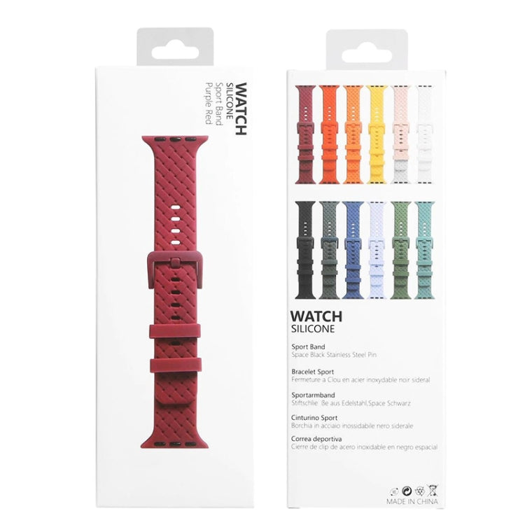 Correa de reloj de silicona con textura trenzada para Apple Watch Ultra 49 mm / Series 8 y 7 45 mm / SE 2 y 6 y SE y 5 y 4 44 mm / 3 y 2 y 1 42 mm (rojo vino)