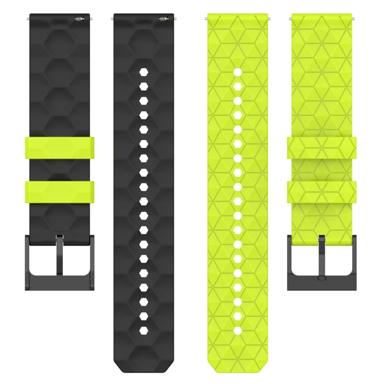 Correa de Reloj Silicona Universal 20mm Dos Colores Patrón Fútbol (Verde Lima + Negro)