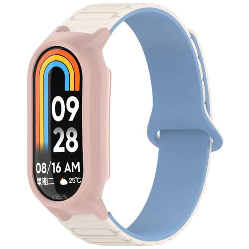 Correa de reloj de silicona magnética en forma de I para Xiaomi Smart Band 9/9 NFC PC Watch Frame (blanco, azul y rosa)