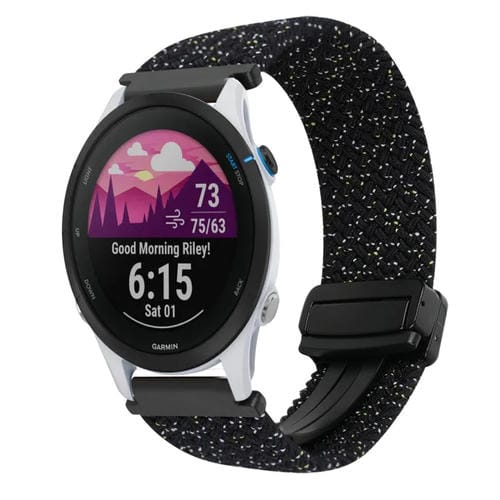 Correa de Reloj Trenzada Garmin Forerunner 255 22mm Hebilla Magnética (Negro con Estrellas)