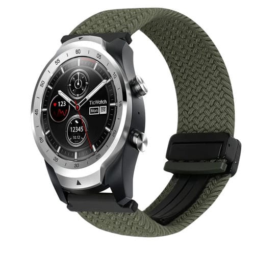 Correa de Reloj Trenzada 22mm para Ticwatch Pro 2020 con Hebilla Magnética (Verde Oliva)