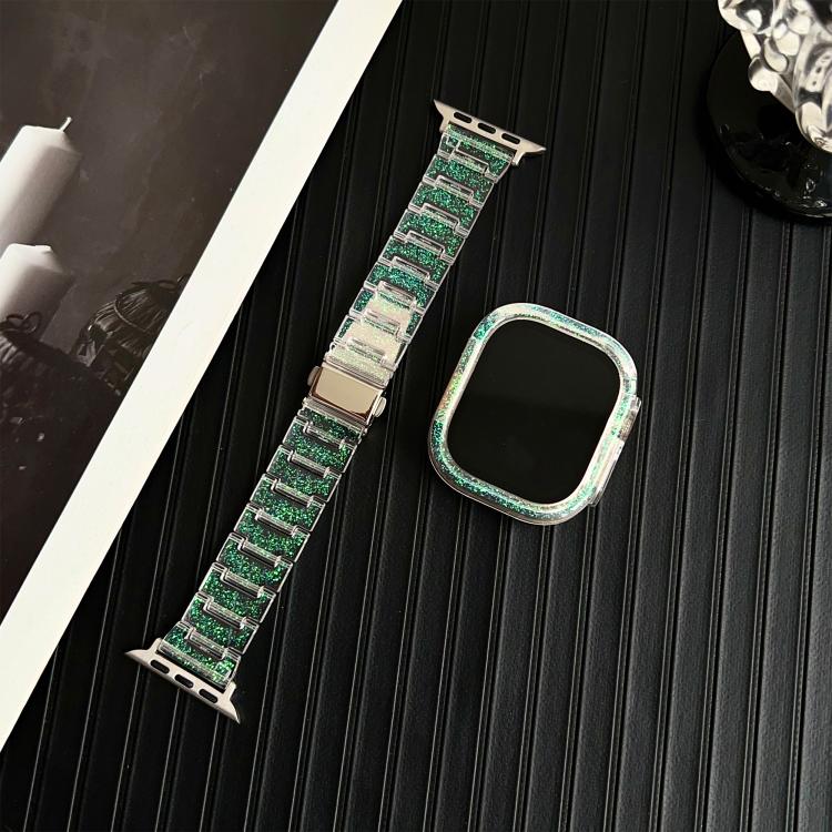 Correa de resina epoxi para Apple Watch Series 10 de 42 mm con carcasa de PC Chameleon (color verde cambiante)