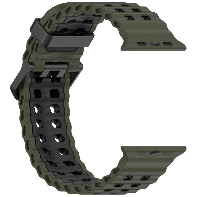 Correa de silicona bicolor con doble fila de agujeros para Apple Watch de 46 mm, 49 mm, 45 mm y 44 mm (verde militar y negro).