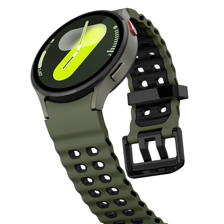Correa de silicona bicolor con dos filas de agujeros para Samsung Galaxy Watch 7 (40/44 mm) (verde militar y negro)