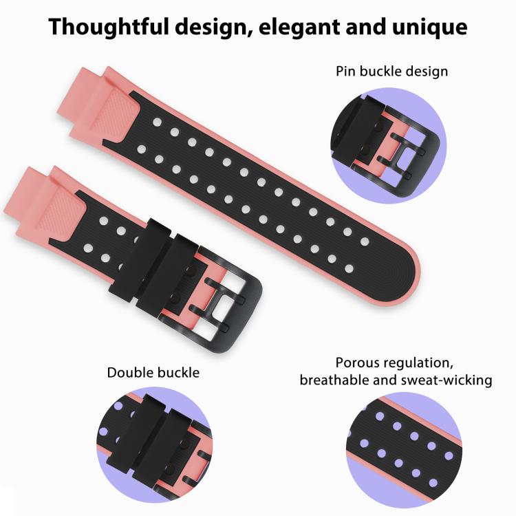 Correa de silicona bicolor con hebilla de doble fila para Imoo Watch Phone Z6/Z6A/Z6 Pro (negro y rosa)