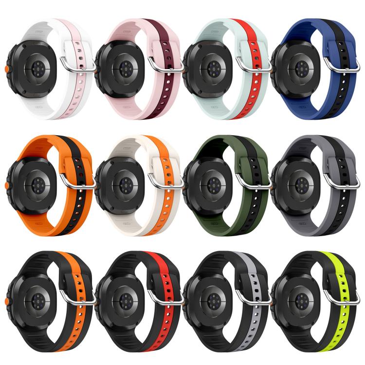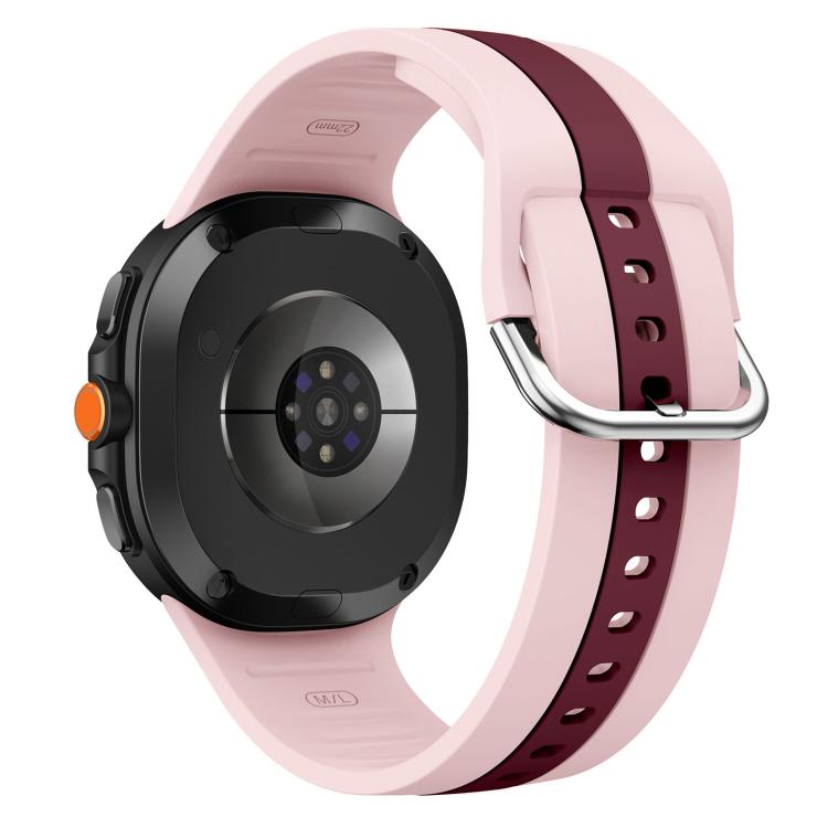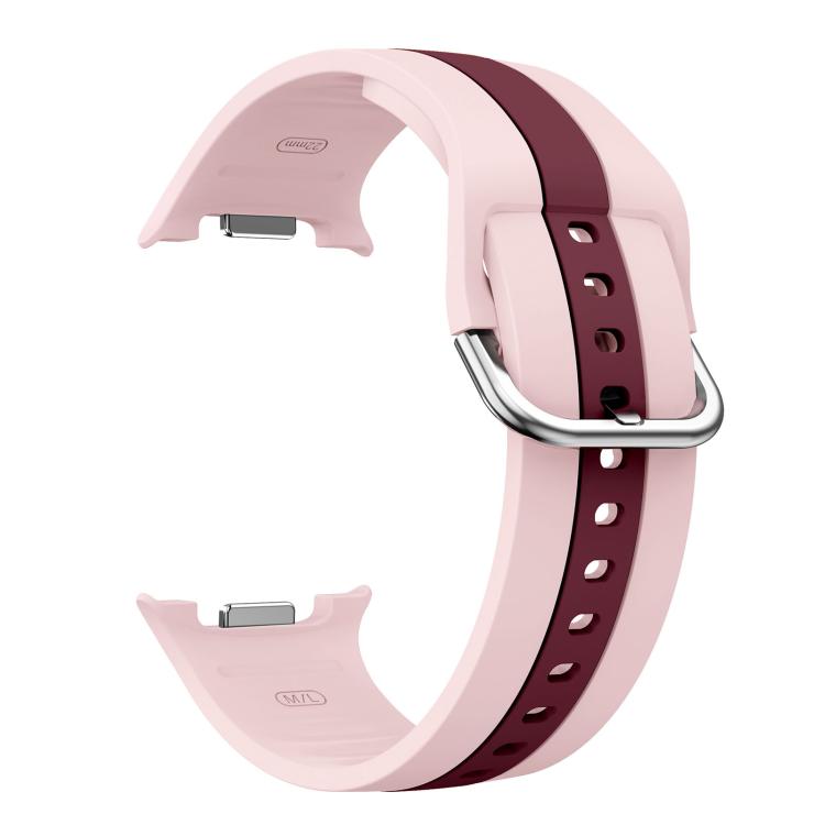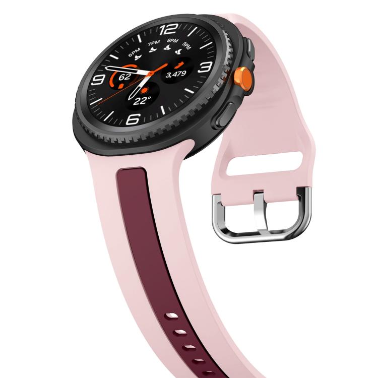 Correa de silicona bicolor con hebilla plateada clásica para Samsung Galaxy Watch8/Watch8 (rosa vino tinto)