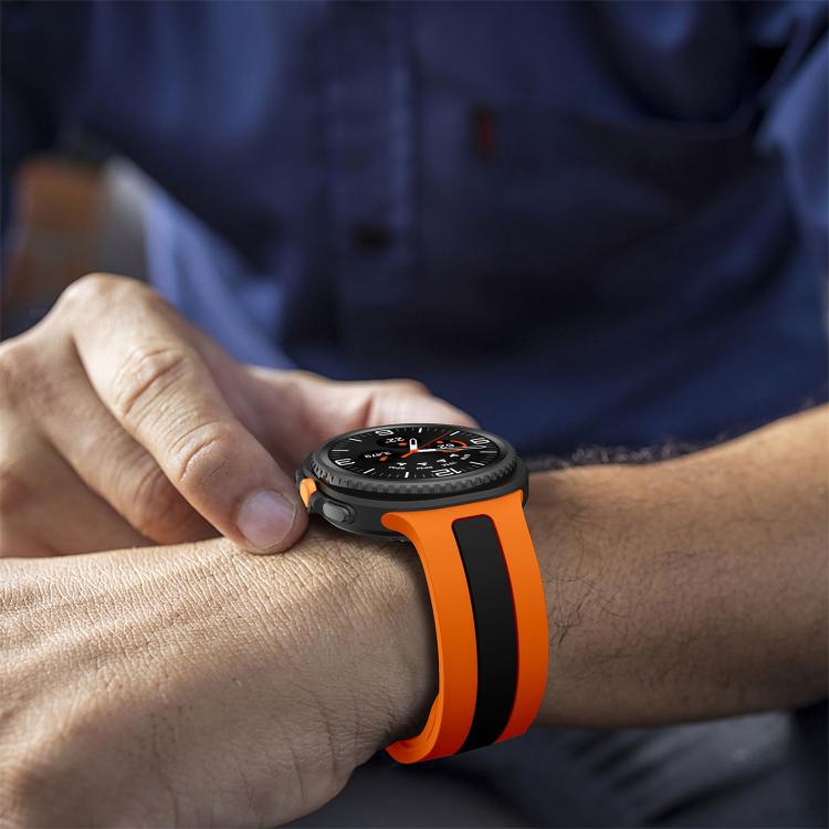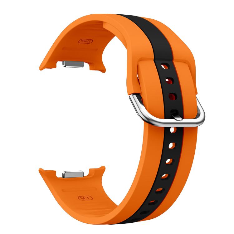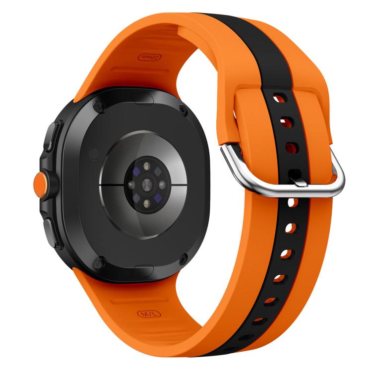 Correa de silicona bicolor con hebilla plateada clásica y rayas verticales para Samsung Galaxy Watch8/Watch8 (naranja y negro)