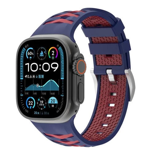 Correa de silicona bicolor con textura de neumático para Apple Watch de 46 mm, 49 mm, 45 mm y 44 mm (azul medianoche y rojo intenso).