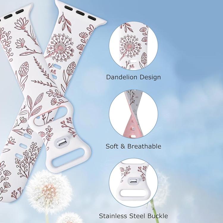 Correa de silicona bicolor grabada con diente de león para Apple Watch de 42 mm / 41 mm / 40 mm / 38 mm (blanco y rosa).