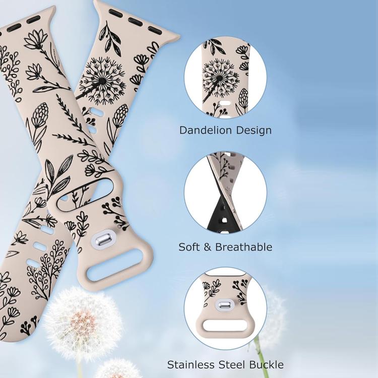 Correa de silicona bicolor grabada con diente de león para Apple Watch de 42 mm / 41 mm / 40 mm / 38 mm (Negro estelar)