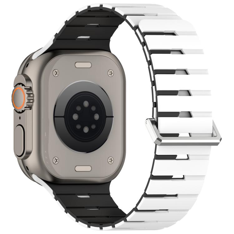 Correa de silicona bicolor magnética estilo melódica (blanco y negro) para Apple Watch de 46 mm / 49 mm / 45 mm / 44 mm